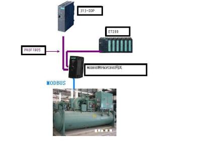 该馆采用约克中央空调系统,控制与监控采用西门子S7300可编程控制器.由于约克空调系统通讯采用MODBUS总线,无法直接接入西门子PROFIBUS总线.应用北京微硬创新科技有限公司的MODBUS转PROFIBUS网关后,顺利将空调系统接入PROFIBUS总线.系统图如下: