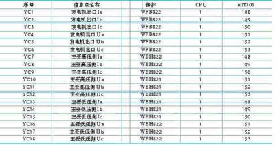 本继电保护系统的主要监测对象包括:一台发电机组、一台主变压器、两回10kV出线、400V厂用变;保护对象包括电站的发电机、变压器、10kV出线。该继电保护系统提供一智能通讯服务器,其功能是将许继设备的通讯规约转换为MODBUS规约,预留RS-485通讯接口与CP340进行通讯。通讯的数据量包括遥信信息点(功能码02,起始查询地址0):YX1~YX36,祥见表1。遥测信息点(功能码03,起始查询地址0)YC1~YC18,祥见表2。