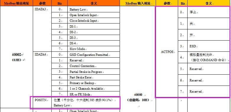 通讯规约如下表一:本案例需要读取电动阀门的位置(modbus 地址40002),写阀门的停止,关,开等命令 (modbus 地址40000的bit0,bit1, bit2····)