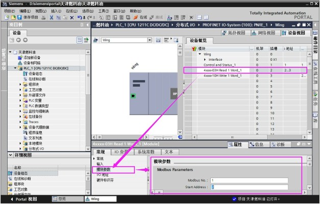 (11) 硬件组态----配置组态的模块参数(包含被连设备的波特率、校验位等信息,此处设置的参数要和被连设备实际参数一致),如图3-12