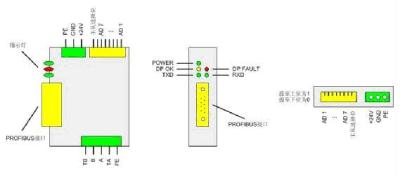 (3) 正面为 Profibus 通讯接口和指示灯。