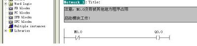 以上工作完了,最后一点就是要启动微硬模块开始工作。将控制字最低为置 1。本例控 制字为 QB0(在 Slot2 里面,具体地址是多少还要看您的配置),所以您需要在 OB1 模块里 面加上如图 1-3 的程序。
